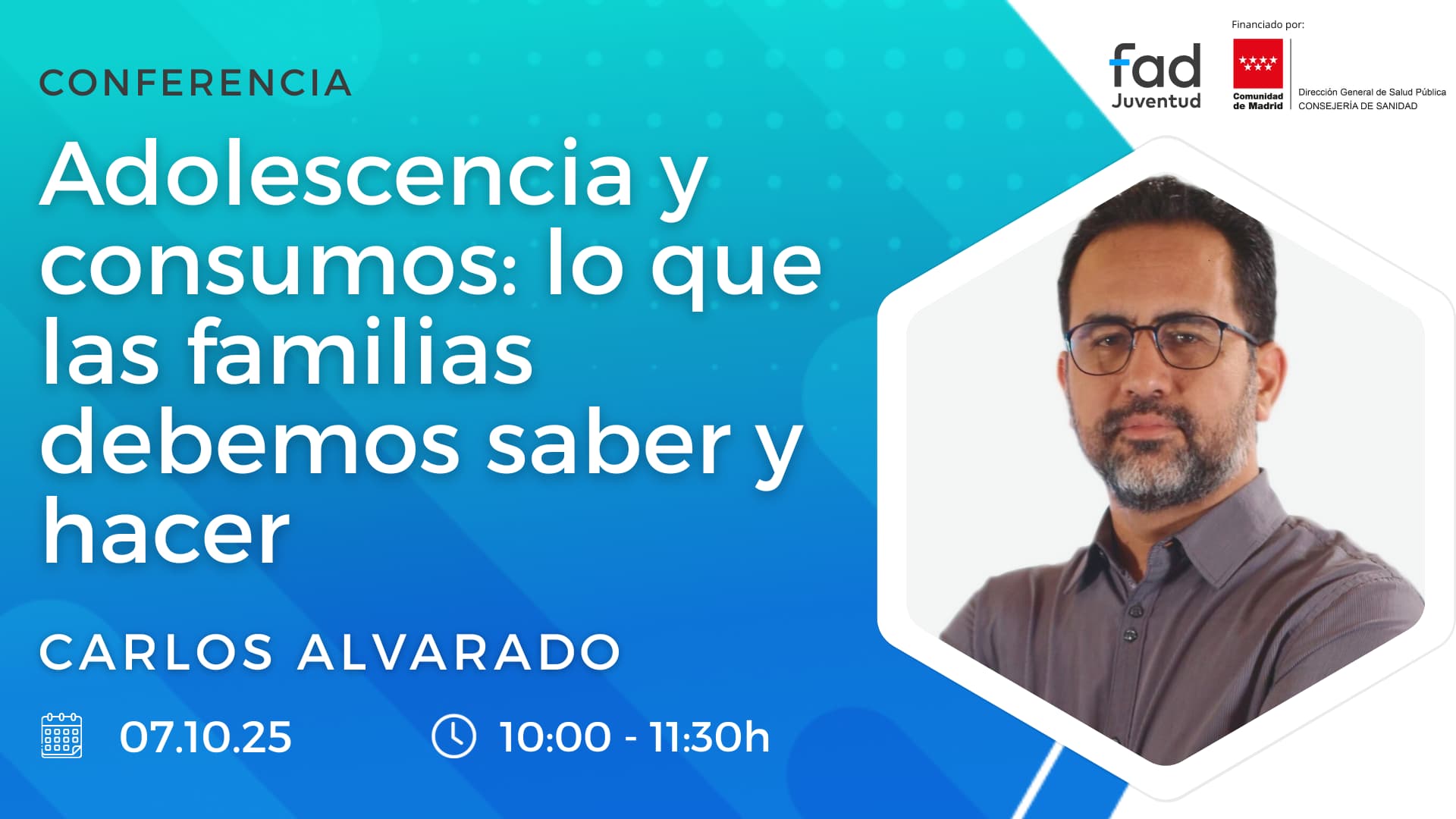 Está impartida por Carlos Alvarado, psicólogo y psicoterapeuta con amplia experiencia, quien hablará de las herramientas necesarias para abordar la adolescencia y el consumo con conocimiento y confianza.