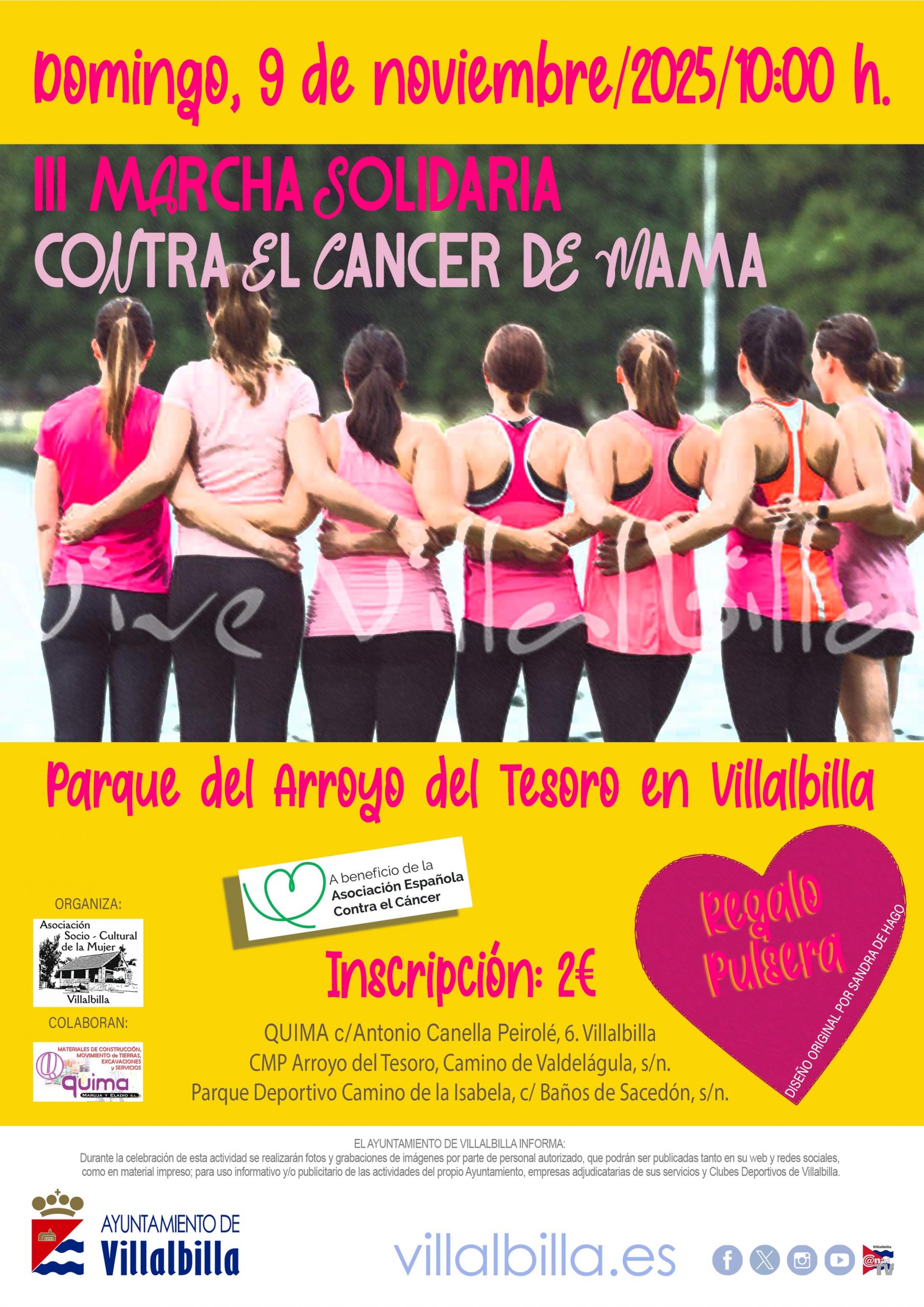 El domingo 9 de noviembre a las 10:00 h. os esperamos en a la III Marcha Solidaria contra el cáncer de Mama que, se iniciará como siempre en el Parque Arroyo del Tesoro en Villalbilla y finalizando en Los Hueros.