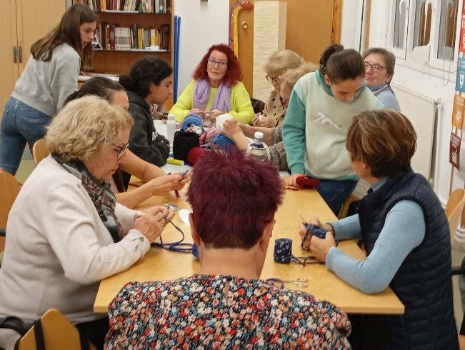 Talleres en el Plan Joven: intercambio de saberes entre generaciones. Personas mayores enseñan a los jóvenes del municipio recetas tradicionales, punto y crochet. Autor fotografías: Ayuntamiento de Villalbilla.