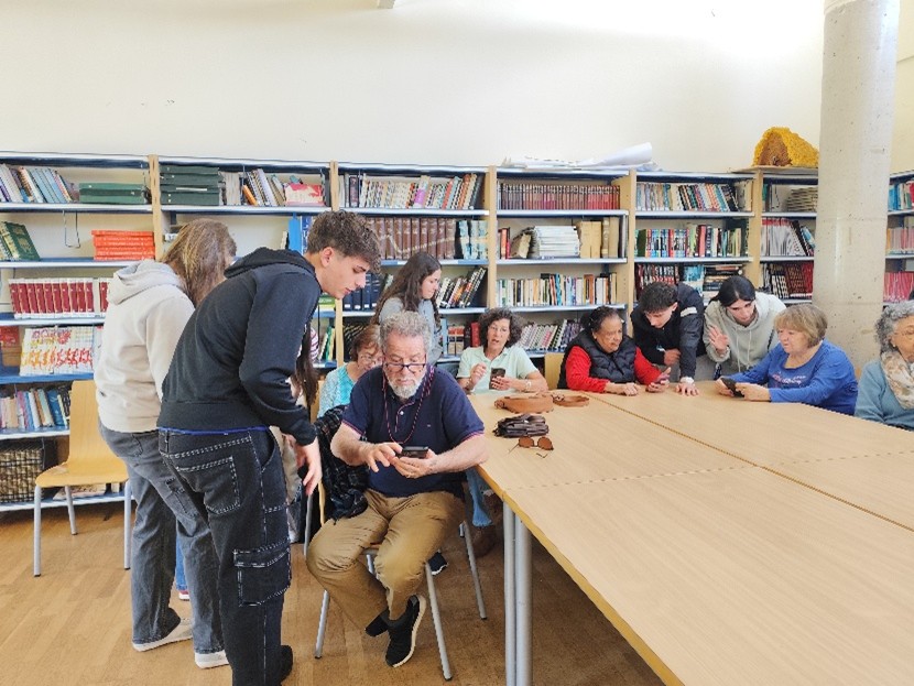 Taller Nuevas Tecnologías y Presentación de la APP contra el Deterioro Cognitivo: los alumnos del Colegio Educrea, invitaron a los participantes de los Talleres de Envejecimiento Activo a un taller para aprender a manejar el móvil y a la presentación de una app con actividades y juegos para retrasar el deterioro cognitivo. Fotografías: Ayuntamiento de Villalbilla.