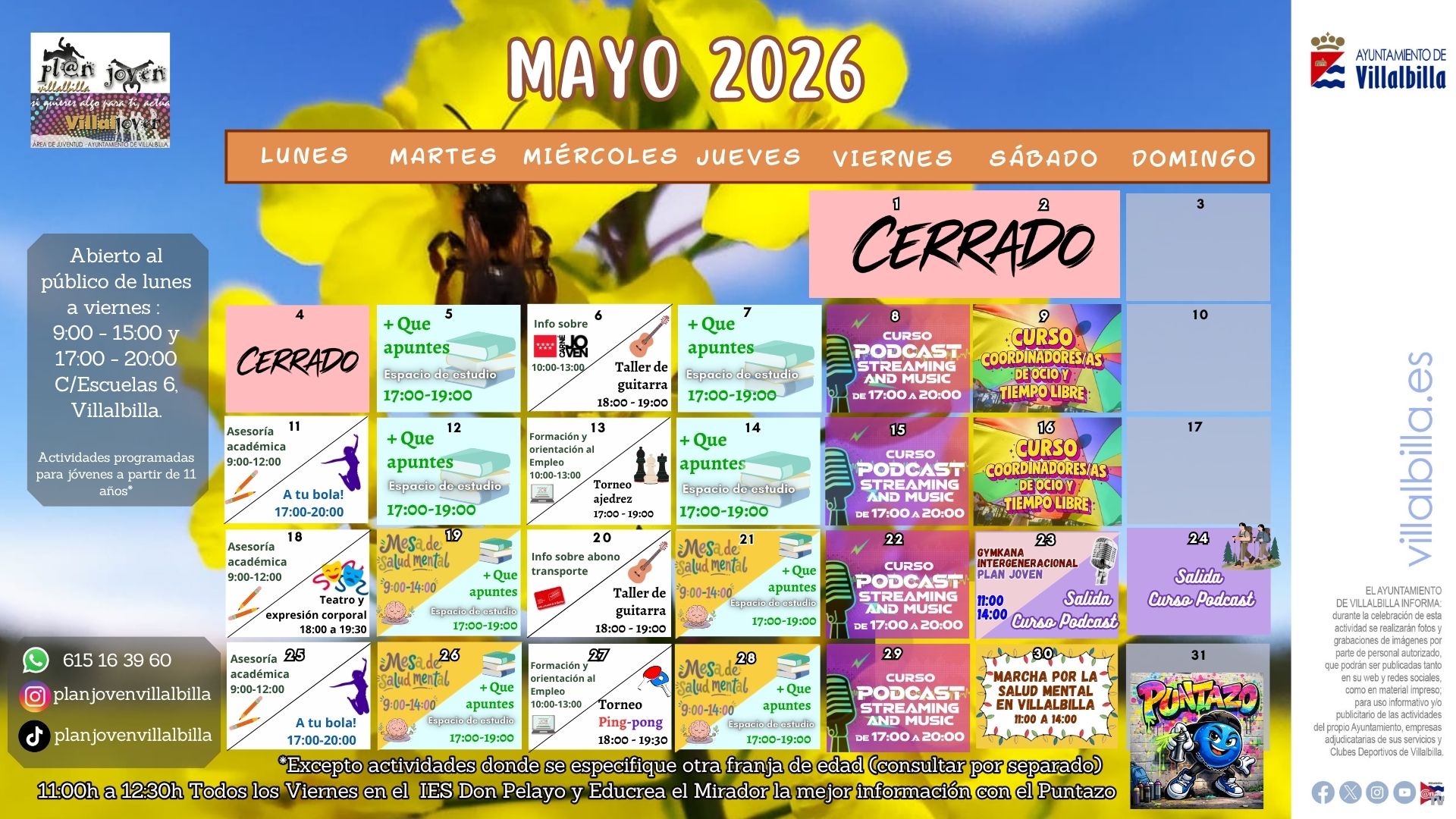 Con la llegada del mes de mayo, el Plan Joven refuerza su compromiso con los jóvenes presentando una programación diversa que equilibra el aprendizaje, el bienestar personal y la diversión. Villalbilla se prepara para un mes donde la participación ciudadana y el crecimiento profesional serán los grandes protagonistas.