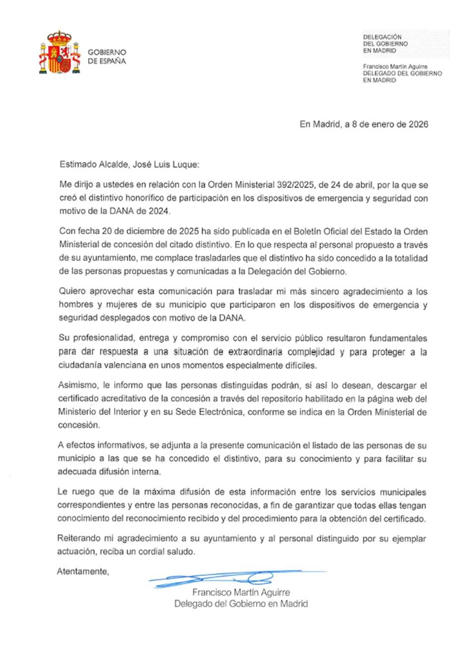 Este reconocimiento a que hoy mostramos es de todos. Porque cuando Valencia nos necesitó, Villalbilla respondió con una sola voz.